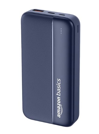 Amazon Basics 20000 mAh Power Bank with 22.5W Fast Charging | Dual Output & Input | Charge 3 Devices Simultaneously | for Smartphones, TWS Earbuds, Speakers, Tablets (Dark Blue)