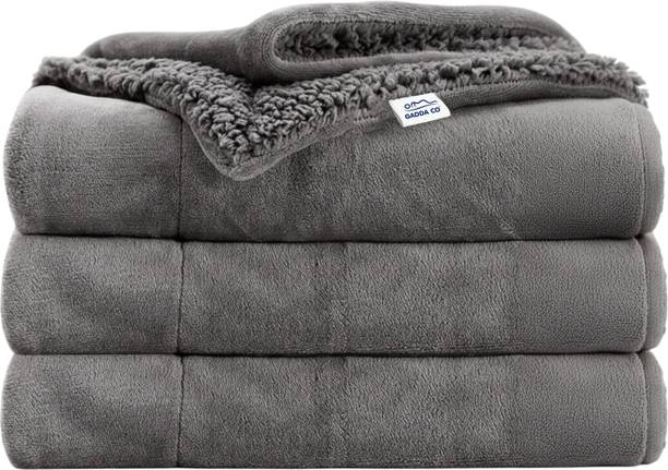 GADDA CO Solid Double Sherpa Blanket for Heavy Winter – Woollen Blend, Grey