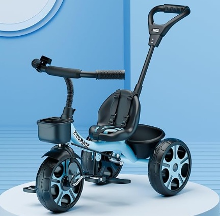 Kidsmate Junior Tricycle for Kids with Parental Control | Cycle for Kids 1-4 Years | Baby Cycle | Bicycle with Storage Basket, Cushion Seat and Seat Belt Carrying Capacity 30 Kgs (Blue)