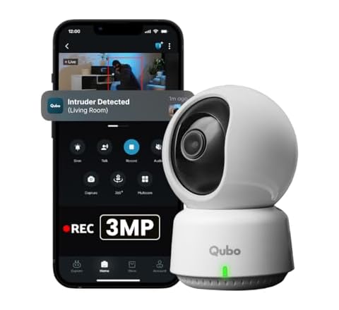 Qubo Smart 360? 3MP [2K] CCTV Camera | Wi-Fi Indoor Home Security Cam | AI Person Detection | Automatic Alarm | App Alerts | NightPulse Vision | SD & Cloud Storage | Made in India
