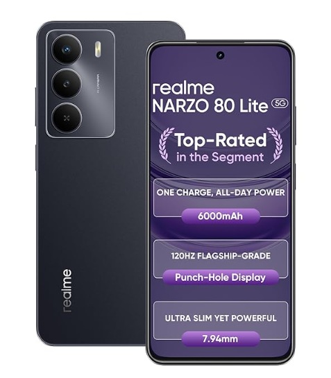 realme NARZO 80 Lite 5G (Onyx Black, 4GB+128GB) | 6000mAh Long-Lasting Battery | MediaTek Dimensity 6300 5G | AI Assist | IP64 Rated Water & Dust Resistance | Military-Grade Durability