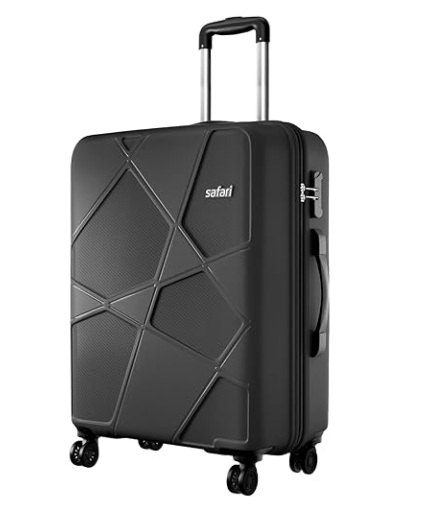 Safari Pentagon Pro 8 Wheels Checkin Trolley Bag Hard Case Polypropylene 360º Wheeling Luggage for Men & Women, Suitcase for Travel, Black, 66Cm Medium Size